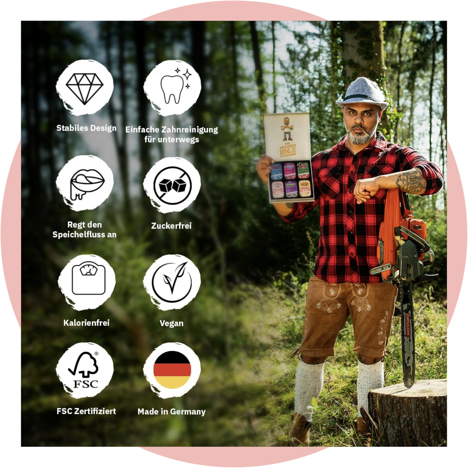 100 Stück in einer robusten, wiederverwendbaren Metalldose – vegan, zuckerfrei, kalorienfrei und handgefertigt in Deutschland. Für den Alltag und echte BLAULICHT-Vibes!
